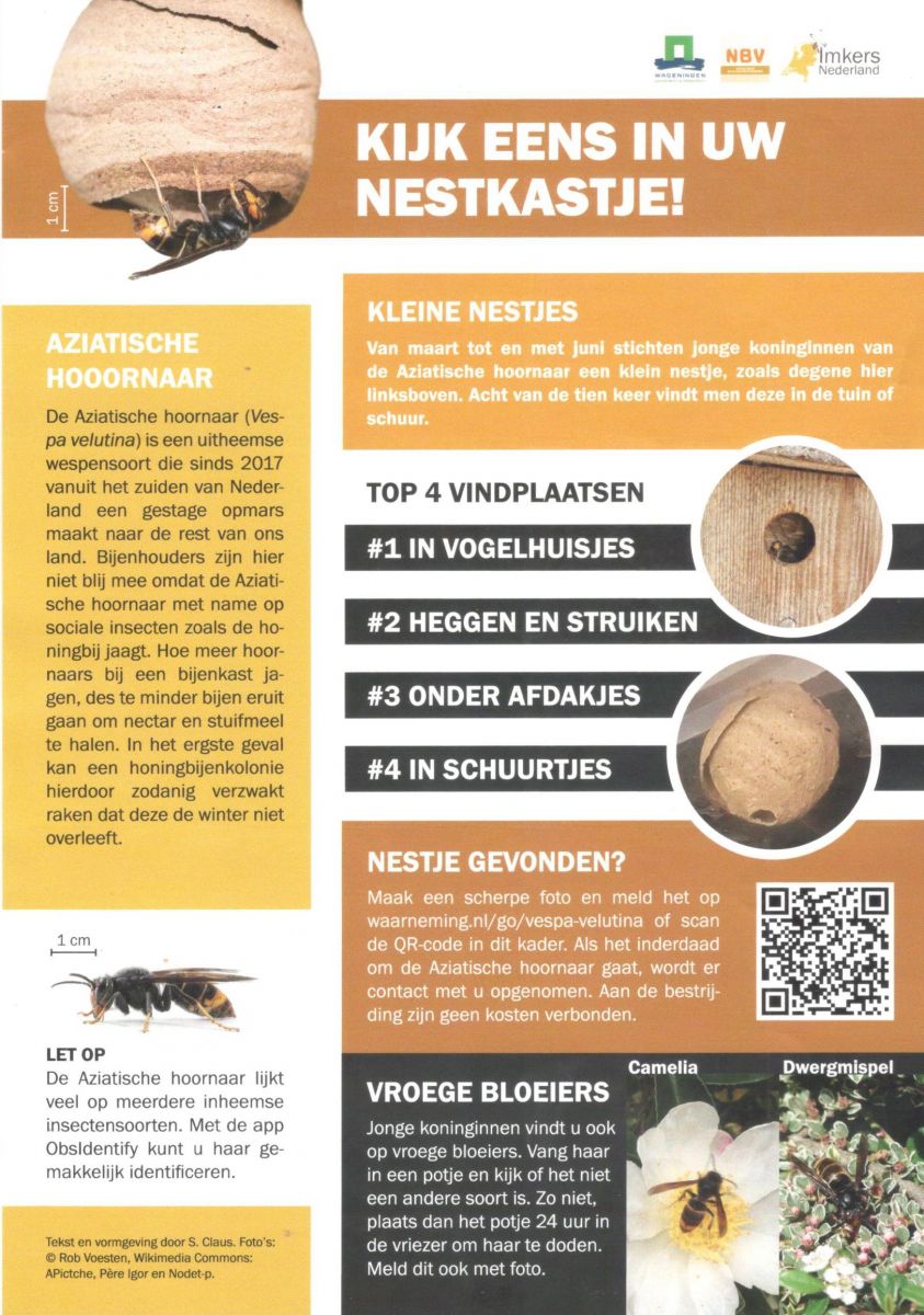 In 2026 zetten wij de aanpak van de opmars van de Aziatische Hoornaars in deze regio voort zoals in 2024 en 2025 is begonnen. De informatie avond staat in de imkeragenda op donderdag 12 februari vanaf 19.00 uur in 't Zoemhukske.
